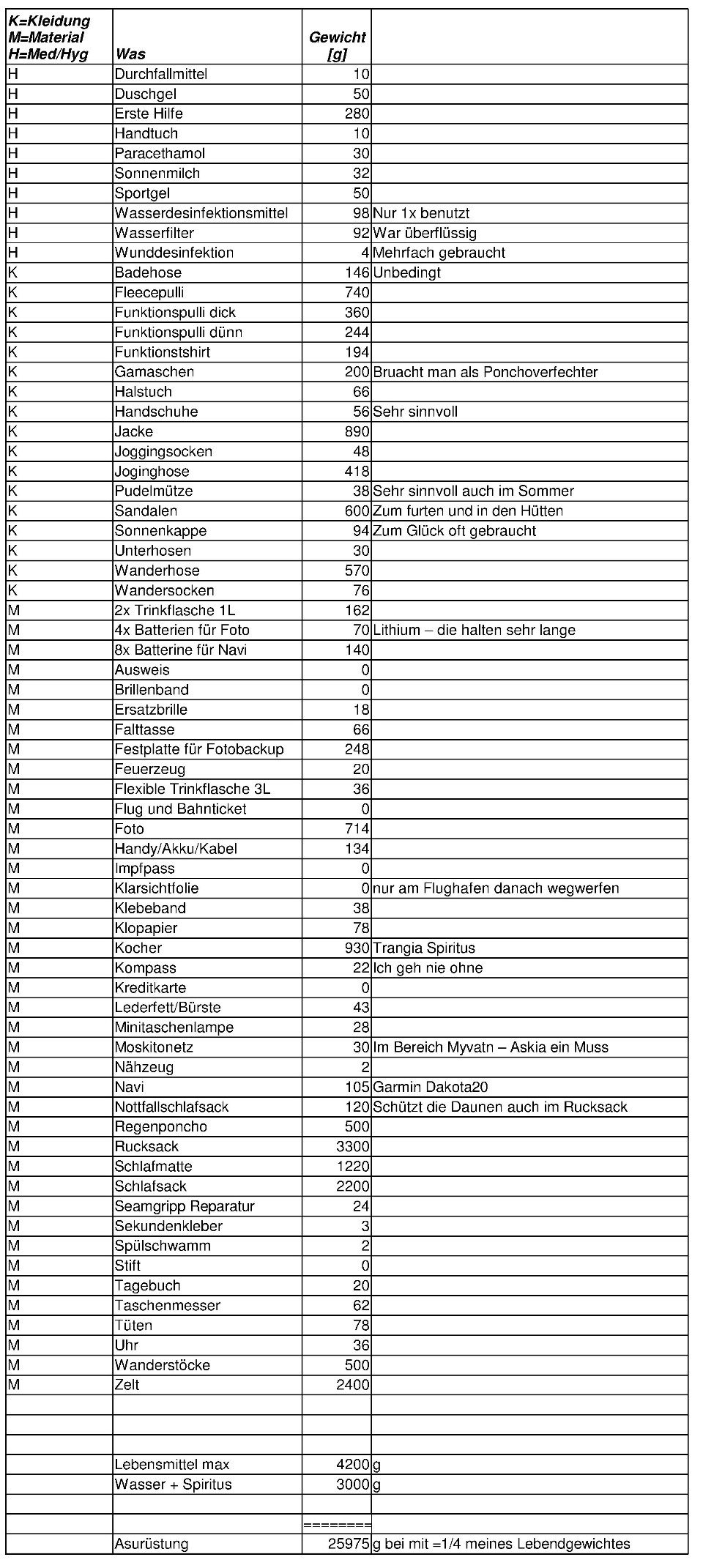 Island 2011 - Packliste